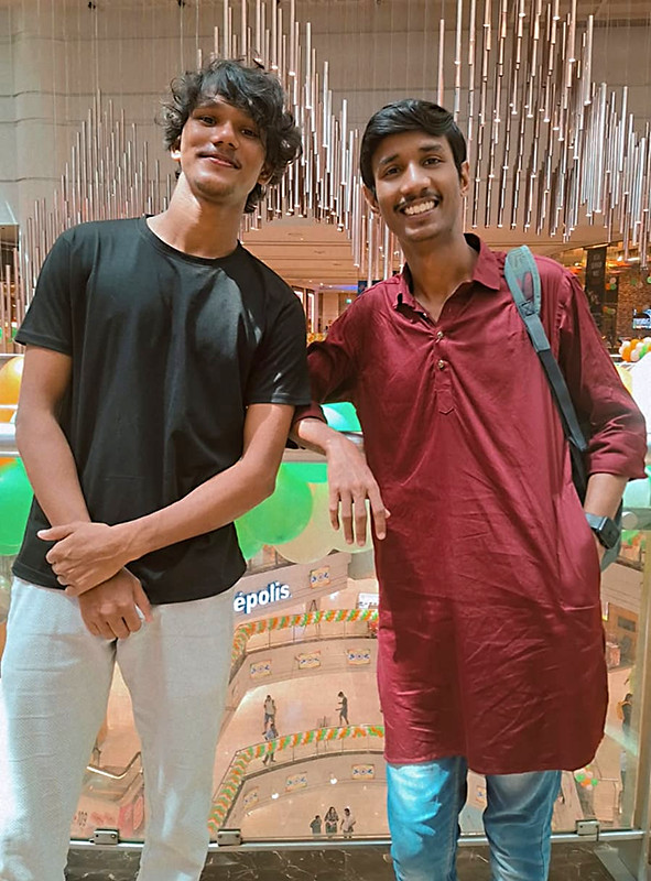 Sukdev et Arman dans un centre commercial, juillet 2025