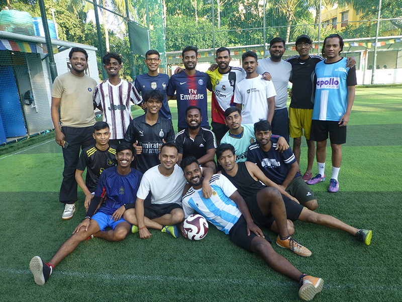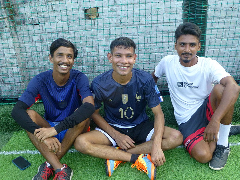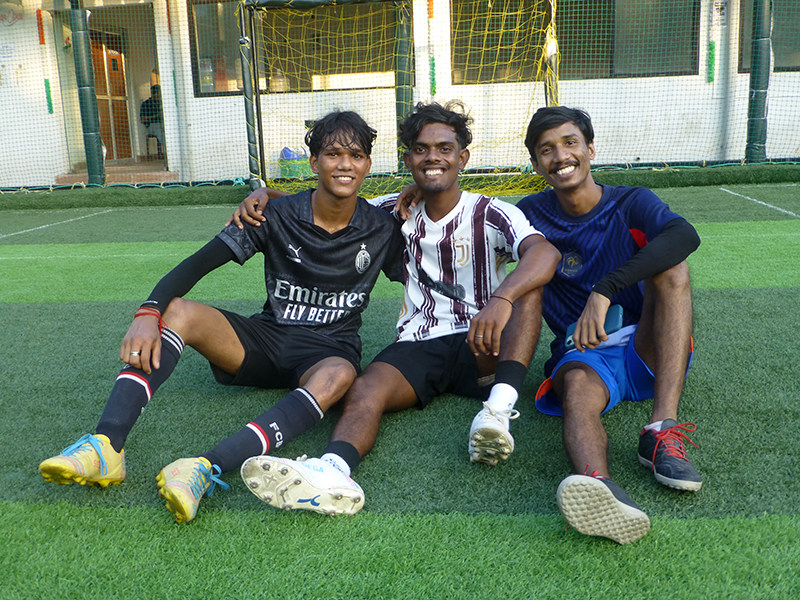 Sashi, Sushil et Rahul lors du match de foot, octobre 2025