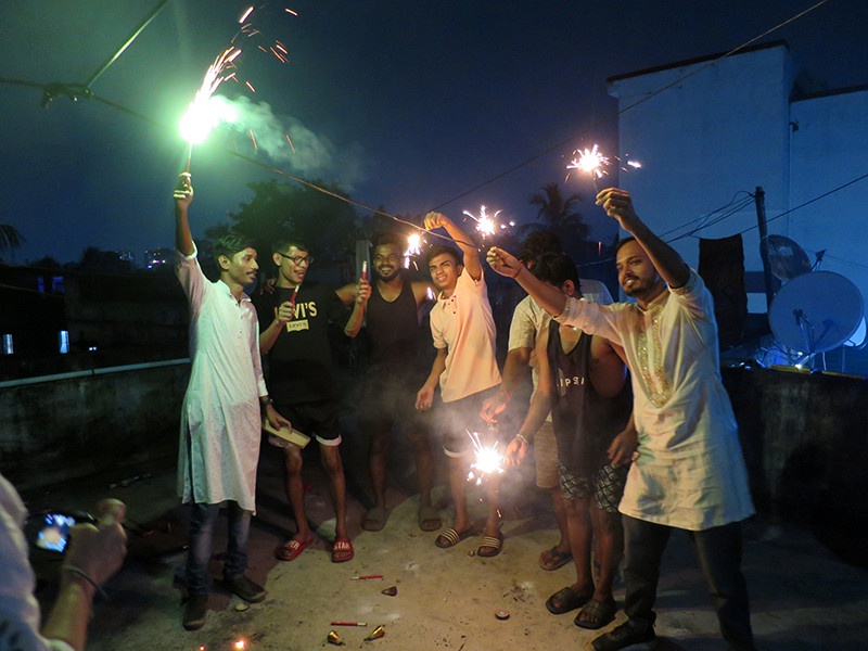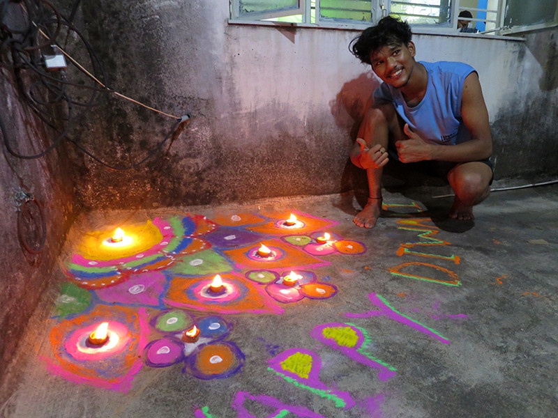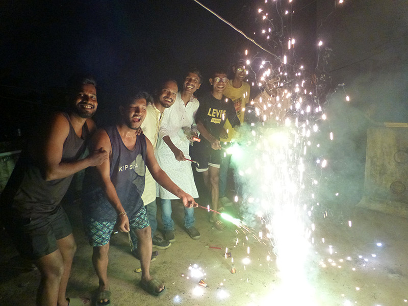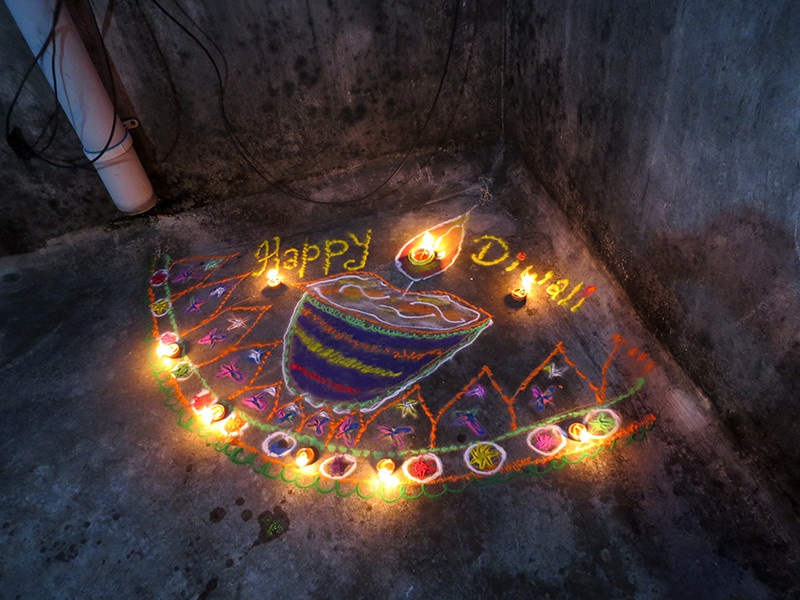 Pour la fête des lumières, les habitants illuminent leur maison avec des lampes à huile ou autres lumières, dessinent des rangolis et les plus jeunes jouent avec toutes sortes de pétards, marquant ainsi la victoire de la lumière sur l'obscurité, de la connaissance sur l'ignorance et du bien sur le mal.