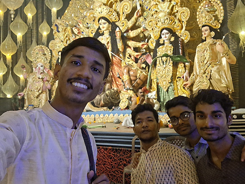 Arman, Debashis, Suman et son frère visitent les temples, octobre 2025