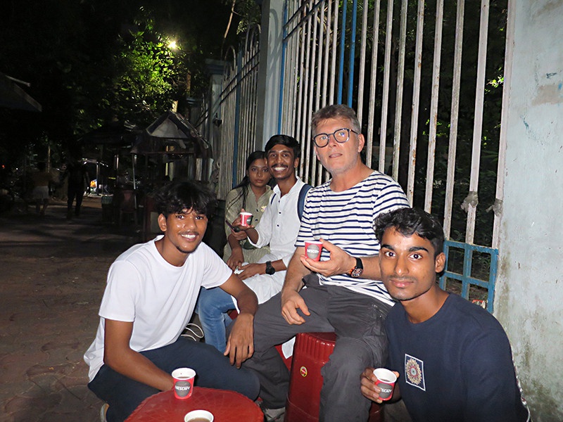 Arrêt dans une échoppe de thé après la séance de cinéma offert par Bernard, octobre 2025