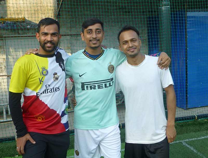 Sashi, Sushil et Rahul lors du match de foot, octobre 2025