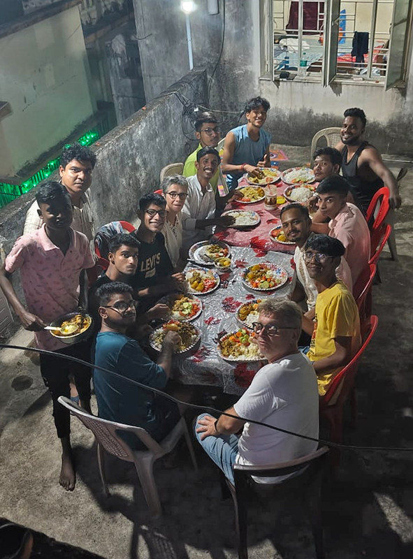 Bernard, un sympathisant de longue date et juste arrivé avec Fabienne pour sa première fois en Inde, était présent et a pu rencontrer une dizaine des garçons qui ont grandi dans les foyers. Une soirée bien sympathique entre jeux, discussions, cuisine et bonne humeur.