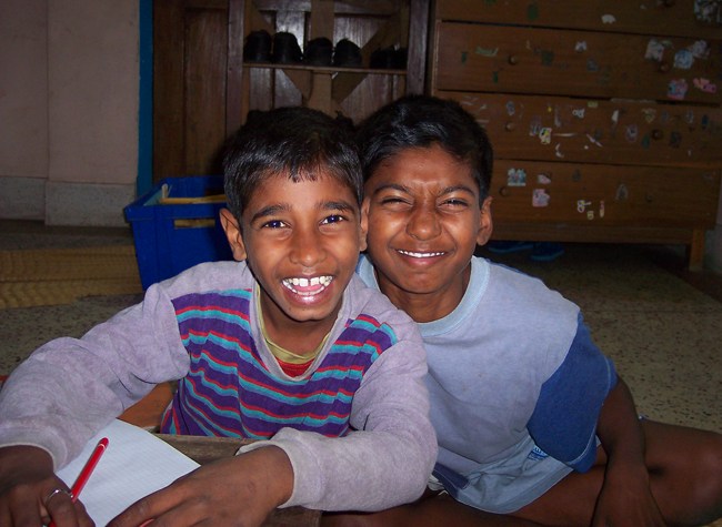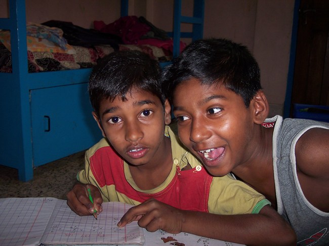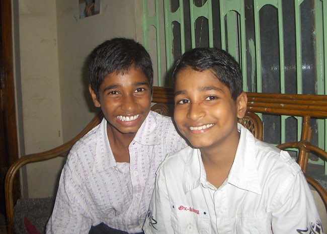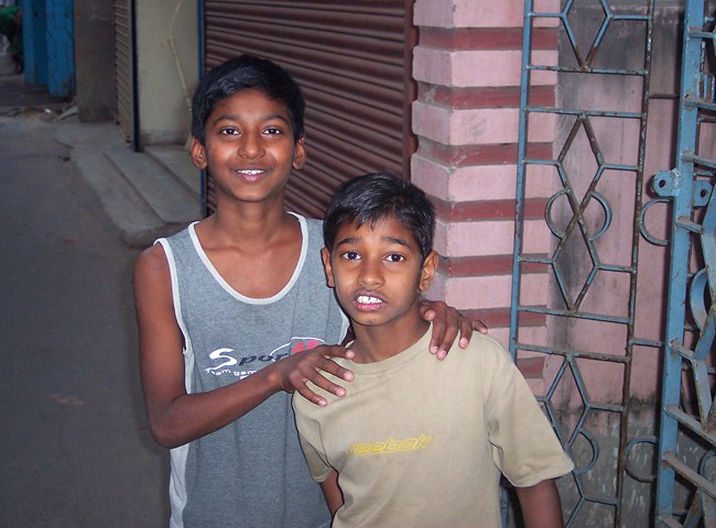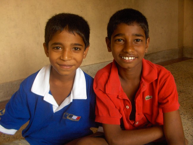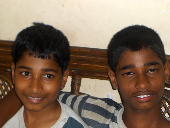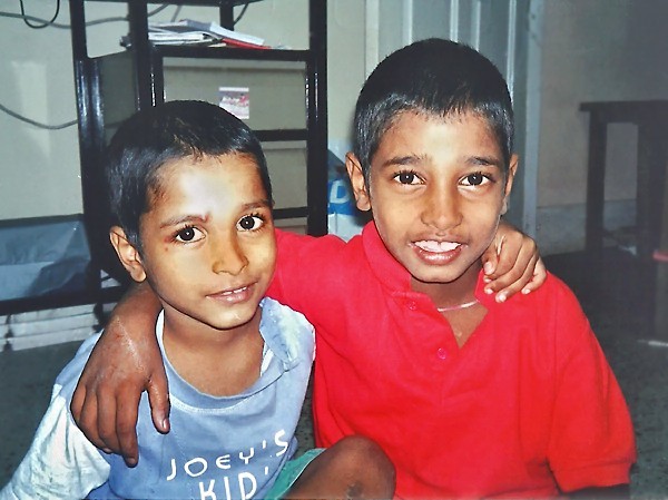 Arun et Akash, le jour de leur arrivée au foyer, octobre 2003
