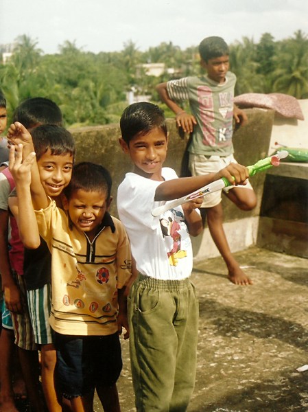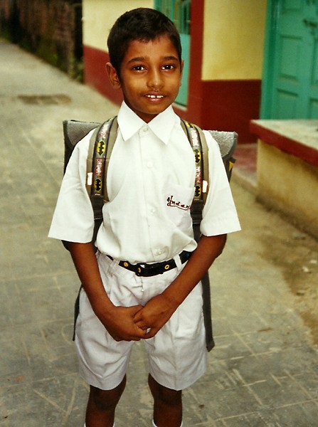 Arun reçoit un cadeau de sa marraine, septembre 2005