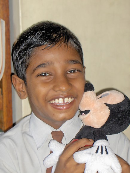 Arun reçoit un Mickey de sa marraine, juillet 2005