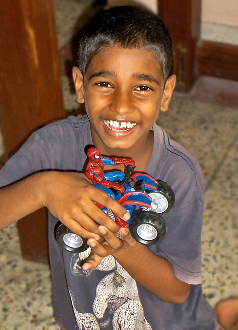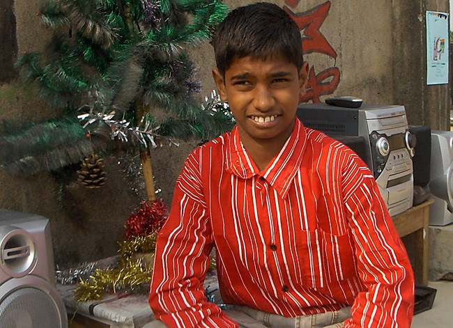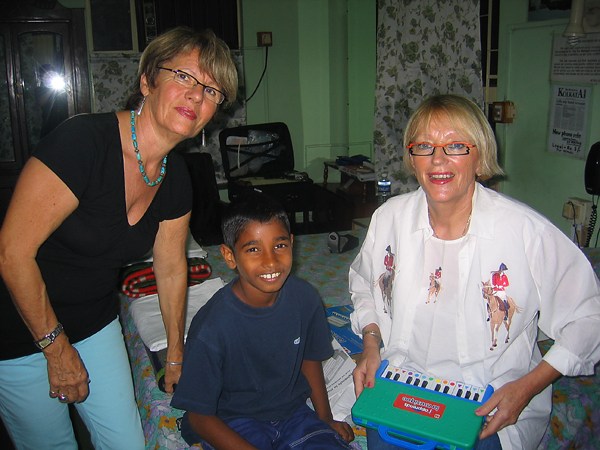 Arun reçoit un cadeau de sa marraine, novembre 2005