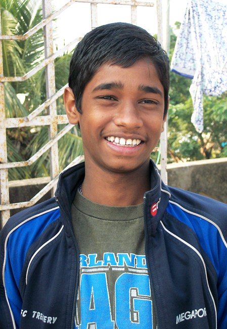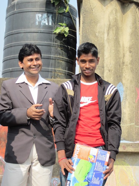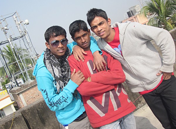 Arun avec Sashi et Sanju lors de la journée sports, janvier 2013
