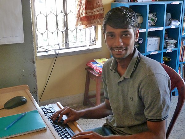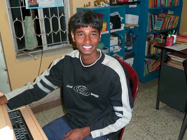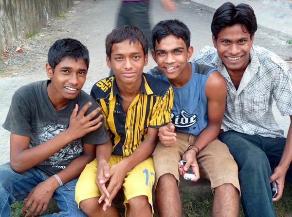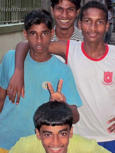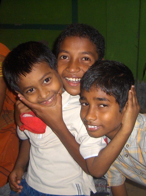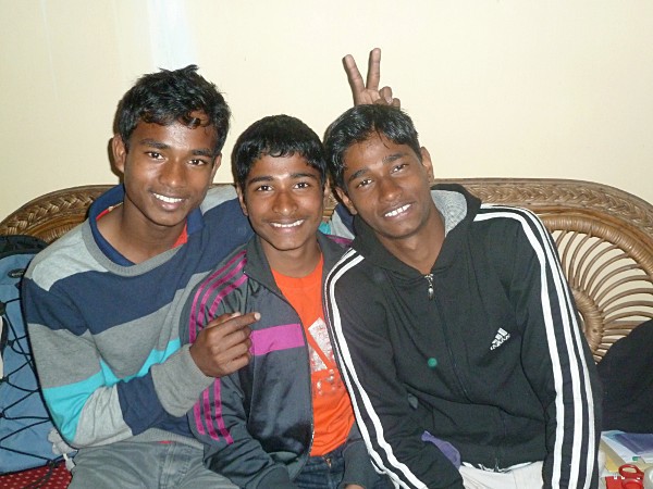 Arun, Akash et Dipankar avec Mireille, janvier 2011