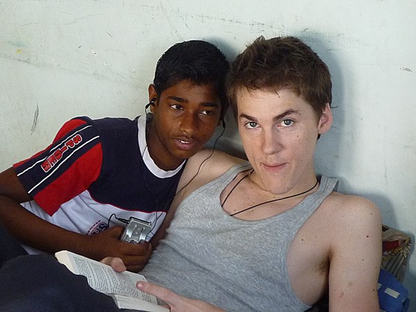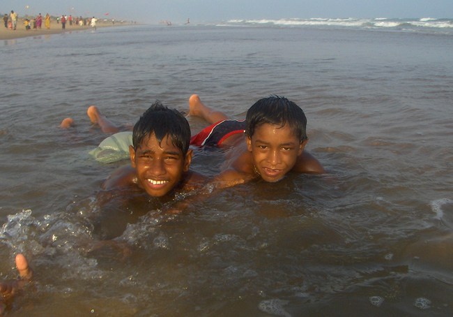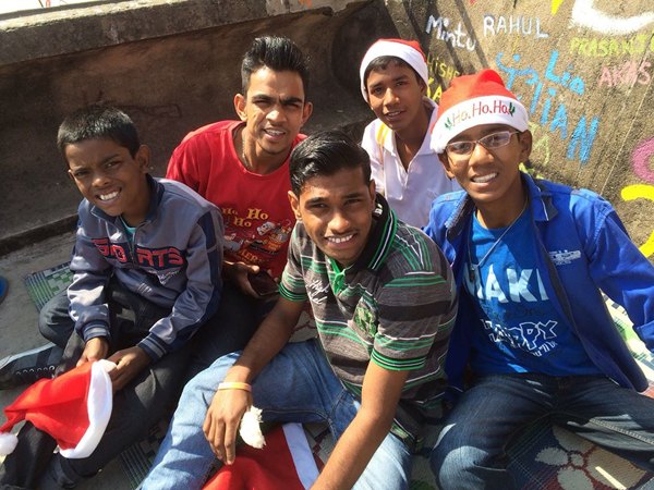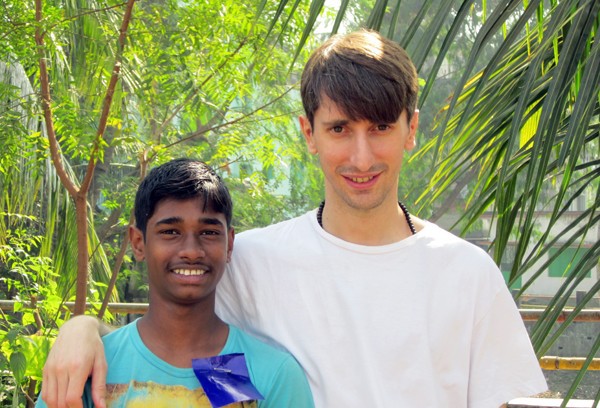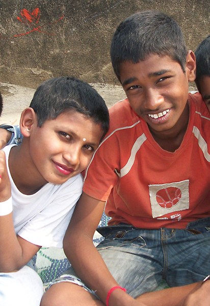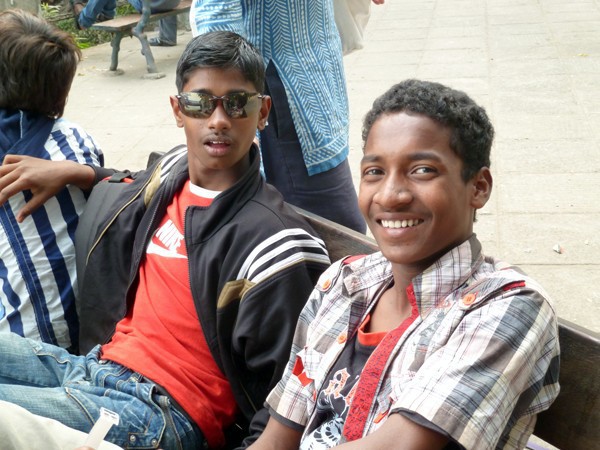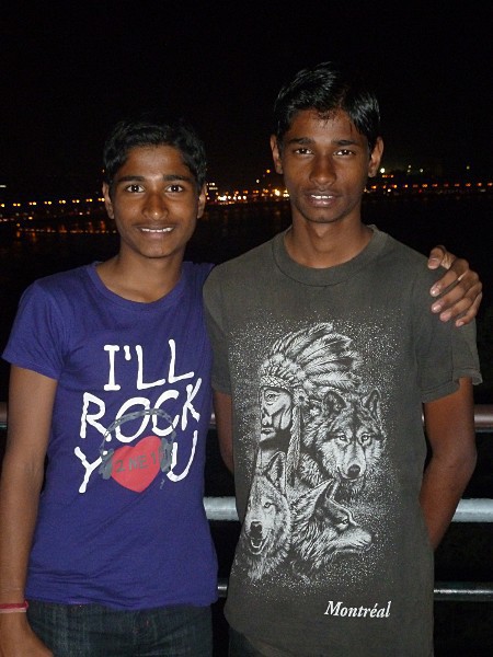 Arun et Akash sur Marine Drive lors d'un séjour offert par quelques parrains et marraines, janvier 2013
