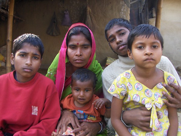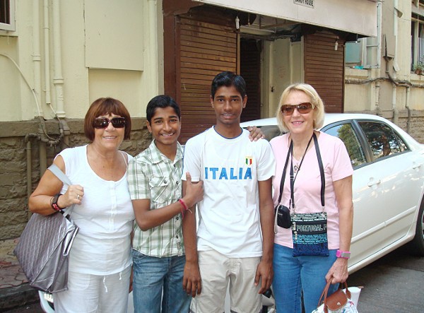 Arun près de sa marraine avec Akash et Madeleine à Mumbai, janvier 2013
