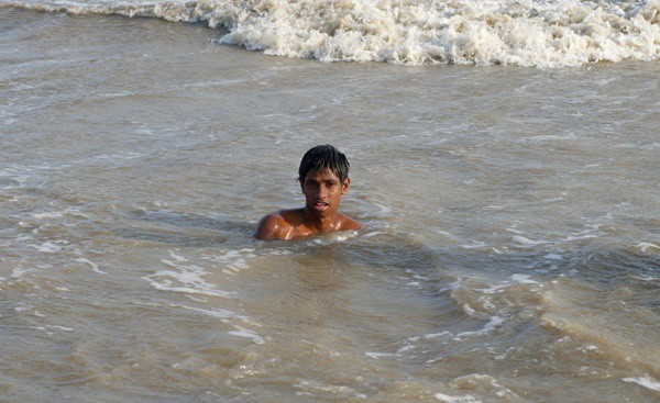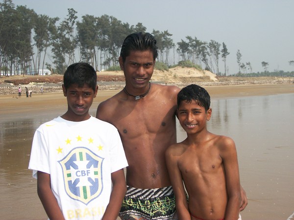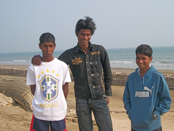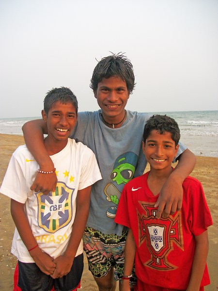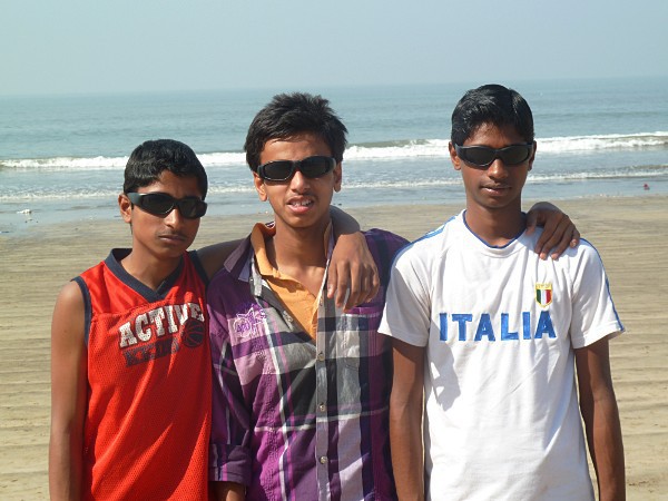 Abhishek, Akash et Arun sur la plage de Juhu, janvier 2013