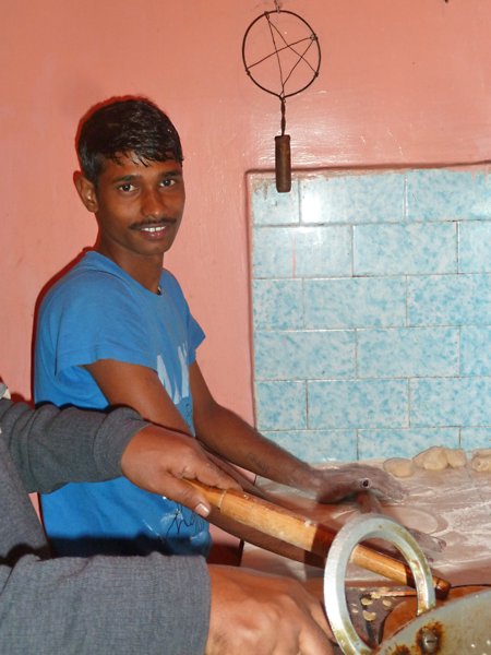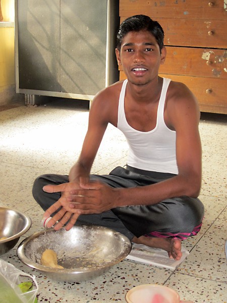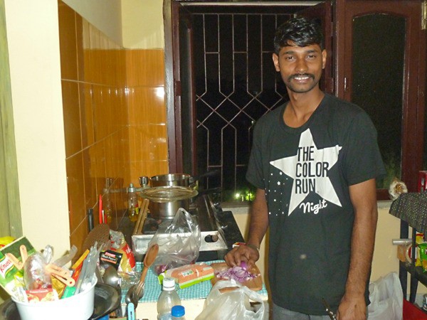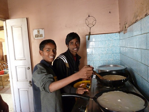 Arun et Subhajit font des crêpes pour la journée anniversaires, décembre 2011