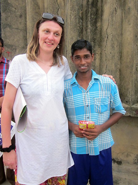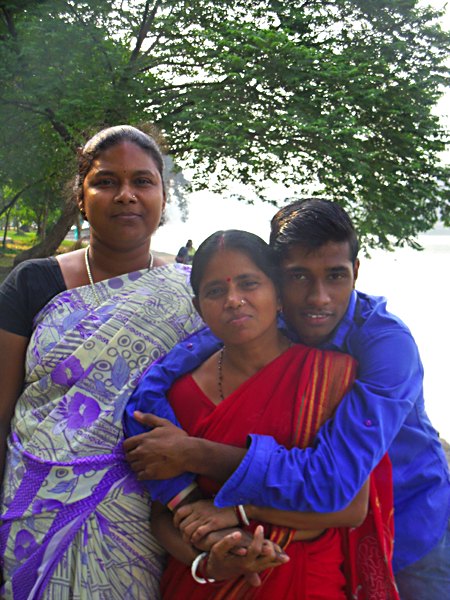 Arun avec Biki et Mireille, sa marraine, avril 2012