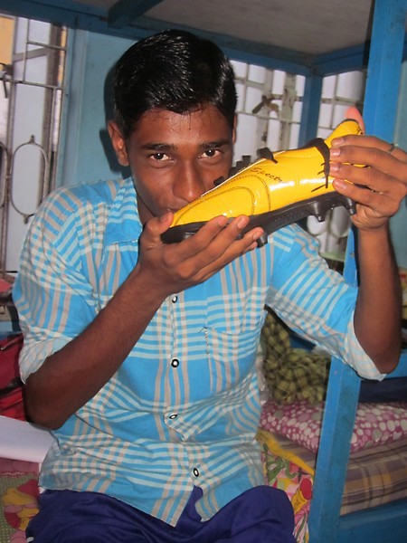 Arun et ses nouvelles chaussures de foot, juin 2013