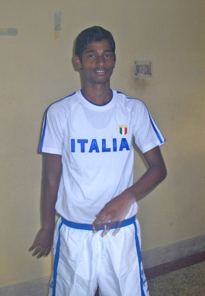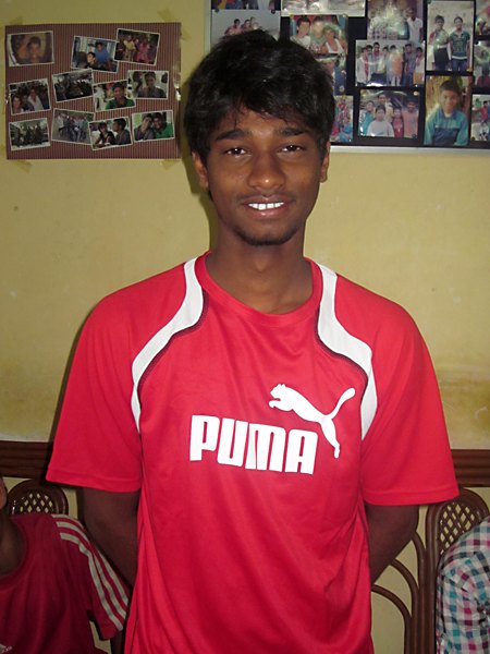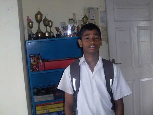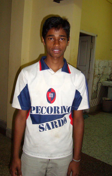 Arun reçoit des vêtements de foot de la part de ses parrains, août 2012