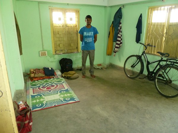 Arun avec Raja et Rama devant l'appartement qu'ils louent, janvier 2018