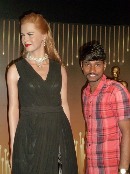 Arun et Amitabh Bachchan au musée de cire, avril 2018