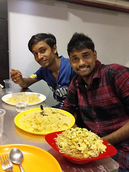 Arun et Abhishek, sur leur lieu de travail, novembre 2017