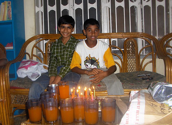 Arun et Gopal, lors de la fête des 5 ans, juillet 2004