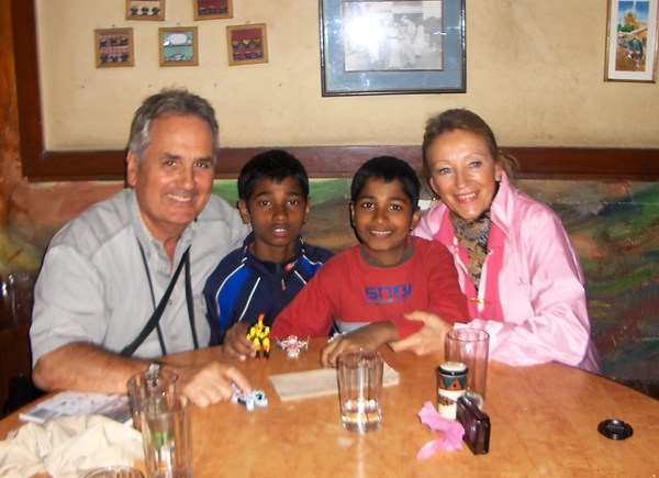 Arun avec ses parrains, Patrick et Cathy et son frère Akash, mars 2018