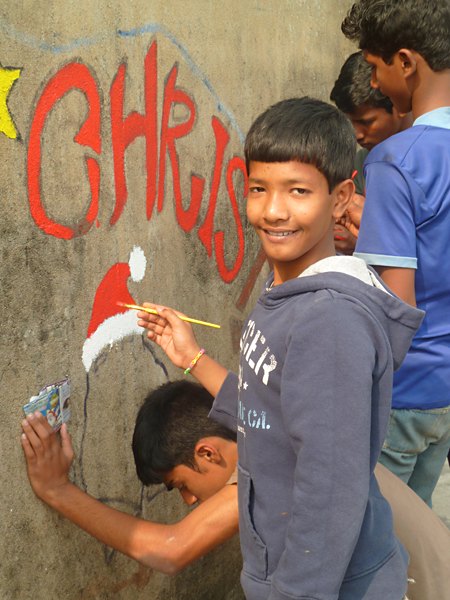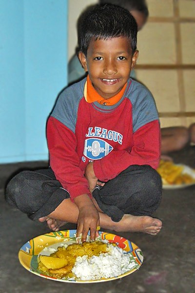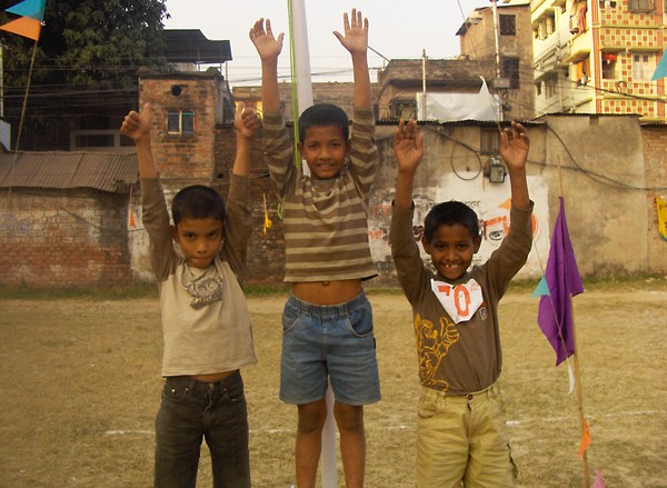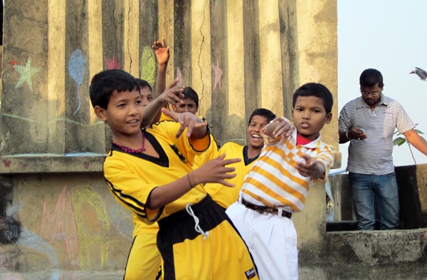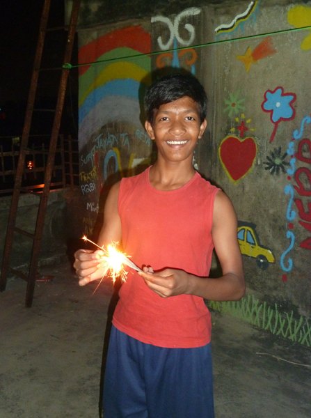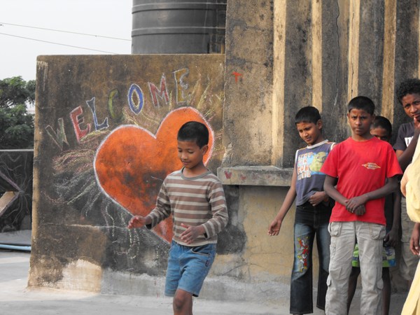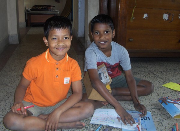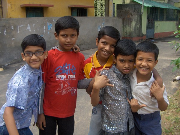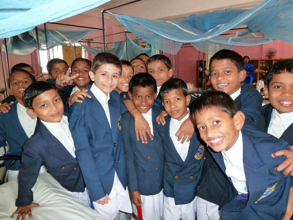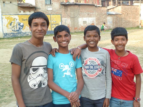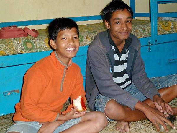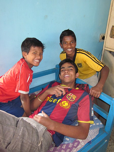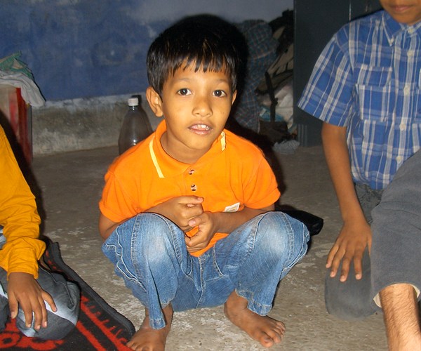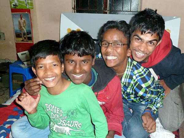 Debashis et ses amis dans le dortoir des petits, décembre 2011