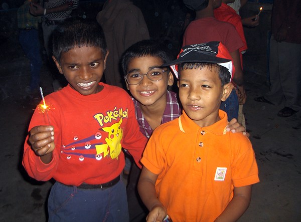 Debashis avec Wahid et Akbar, Kali Puja, novembre 2007