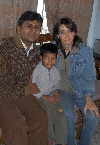 Debashis avec Laurence, sa mère et Charles, janvier 2020