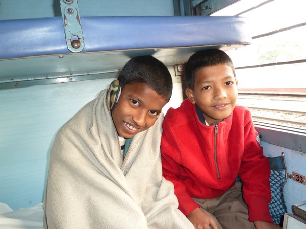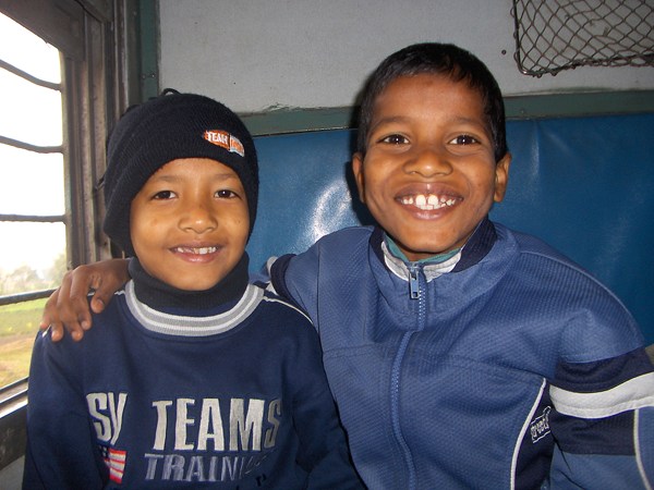 Debashis et Syed, dans le train pour rejoindre l'école, février 2008