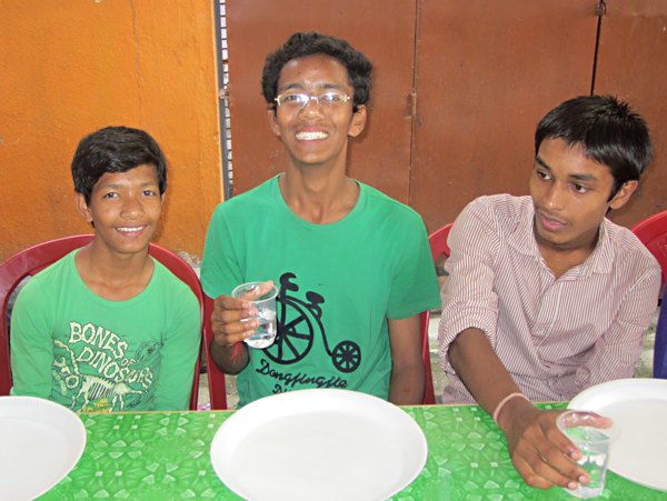 Debashis avec Biswajit et un copain à la fête de l'école, septembre 2014
