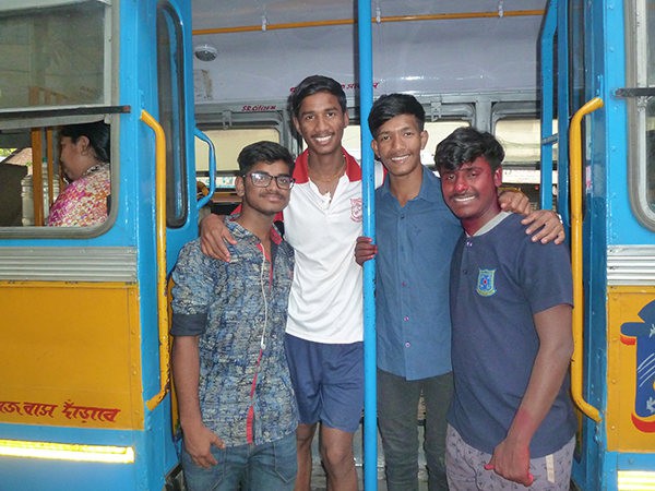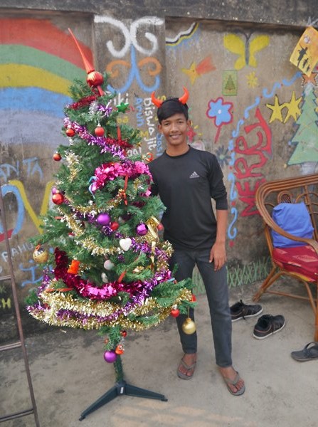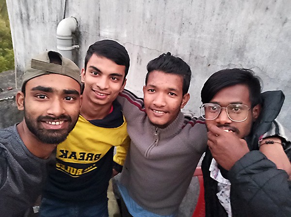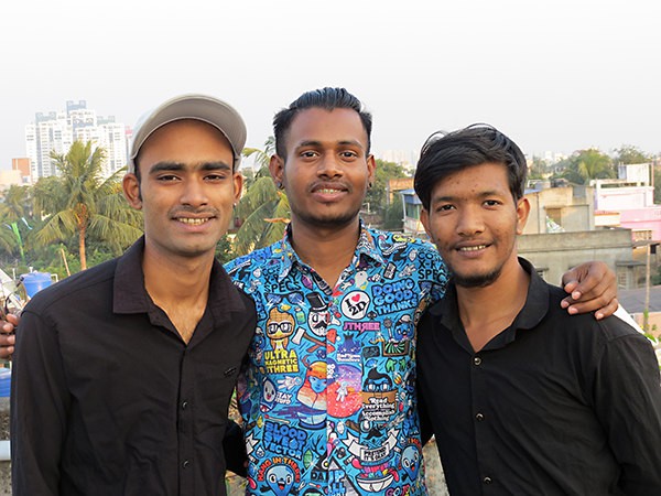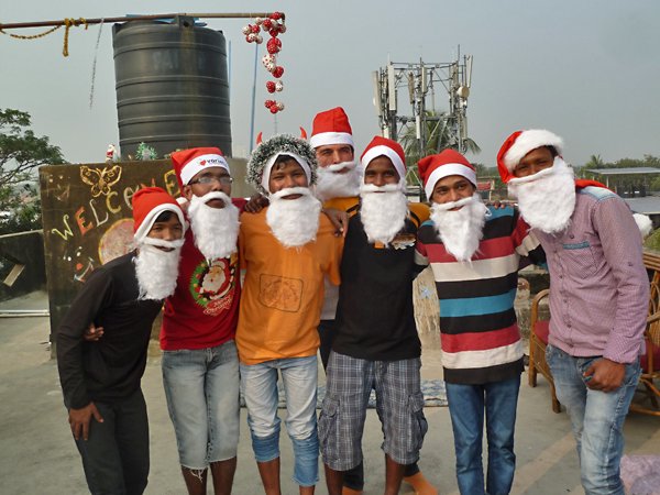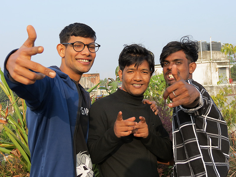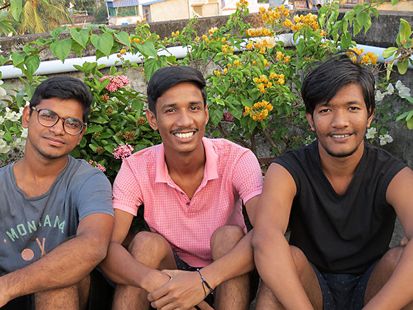 Debashis avec Monzoor, Akash II et Rafiq, le jour de Noël 2020