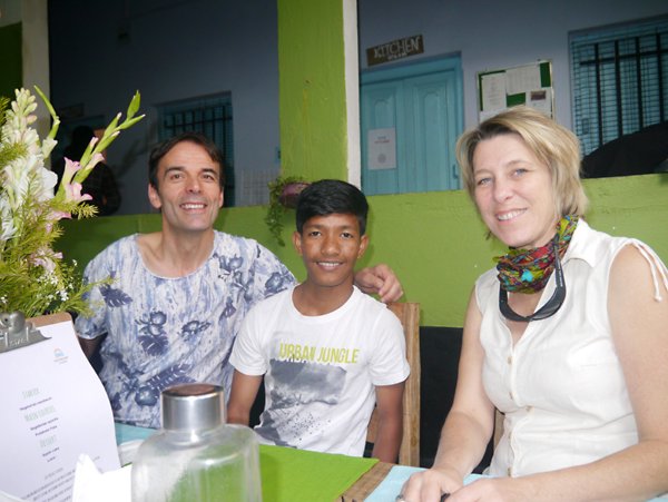 Debashis, entouré de ses parrains, Laurence et Charles, janvier 2020