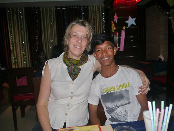 Debashis et Laurence, sa marraine, lors de la soirée anniversaire des 20 ans, 31 décembre 2019
