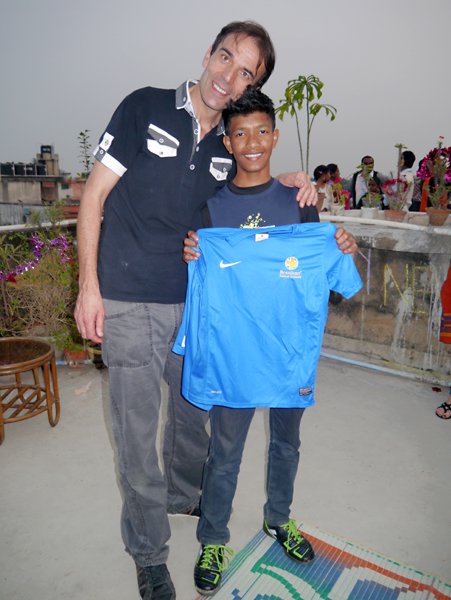 Debashis reçoit un T-shirt de l'O.M, janvier 2020