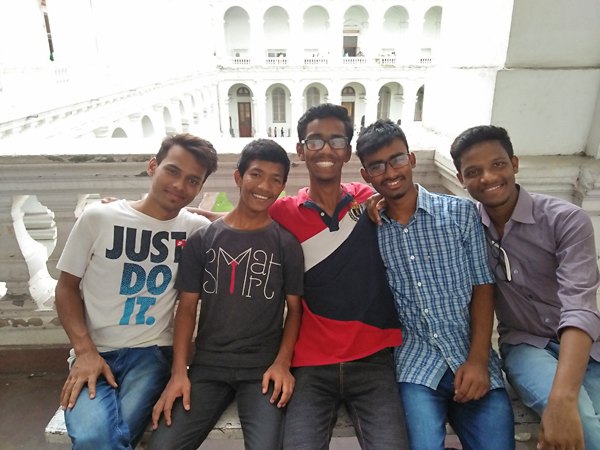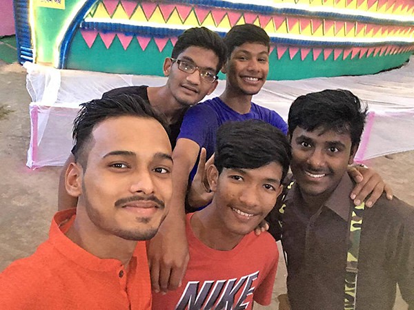 Debashis avec Rahul, Biswajit, Rabi et Rahim, lors du festival de Durga Puja, octobre 2018