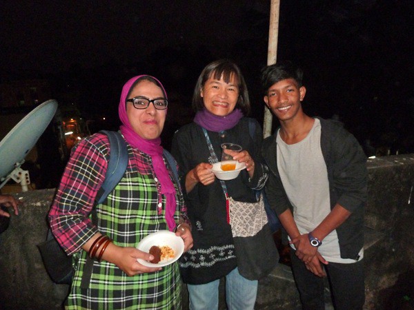 Debashis avec Ippui et son amie, le soir du spectacle annuel du 1er janvier 2018