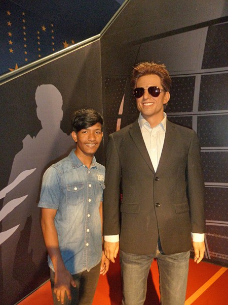Debashis et Tom Cruise au musée de cire, avril 2018