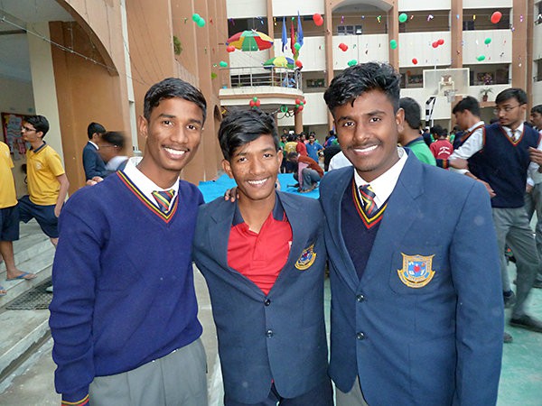 Arman, Debashis et Rahim, le jour de la journée Sports de l'école, décembre 2018