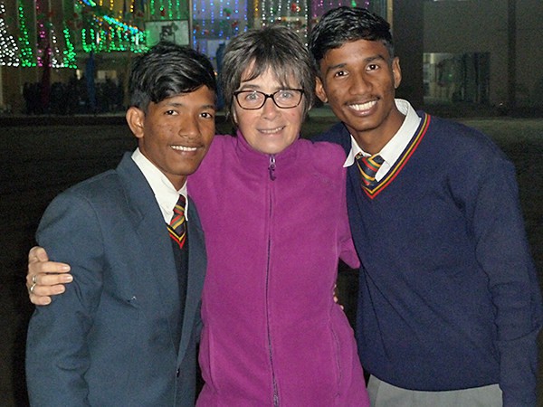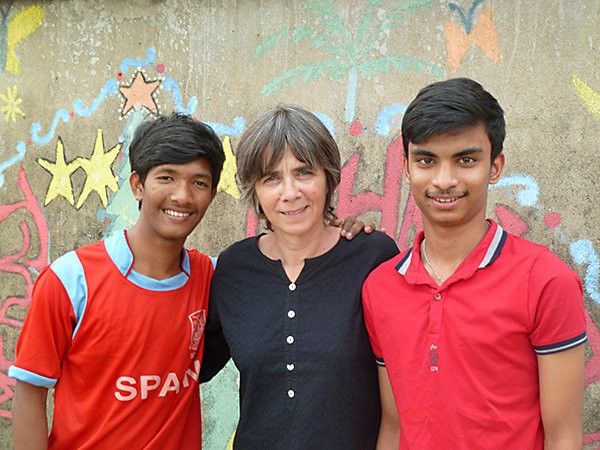 Debashis et Arman avec Fabienne, le jour de la journée Sports de l'école, décembre 2018