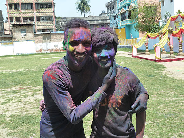 Debashis et Jayanta, lors du festival de Holi, mars 2019