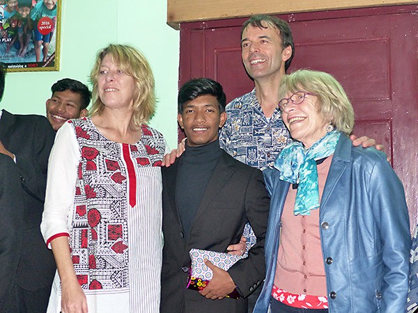 Debashis reçoit un cadeau de ses parrains pour le féliciter de son diplôme, décembre 2018