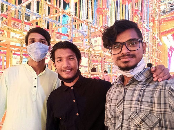 Debashis avec Arman et un ami, lors du festival de Durga, octobre 2020