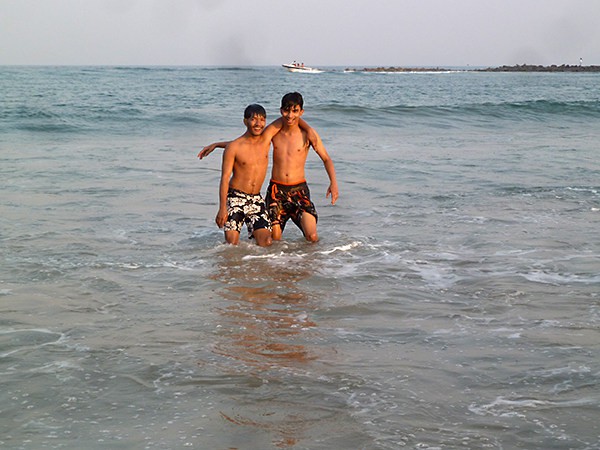 Debashis avec Akash, lors d'un séjour à la mer, mars 2023
