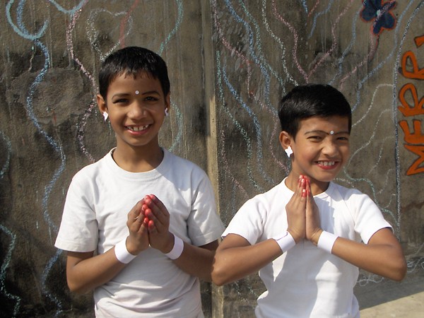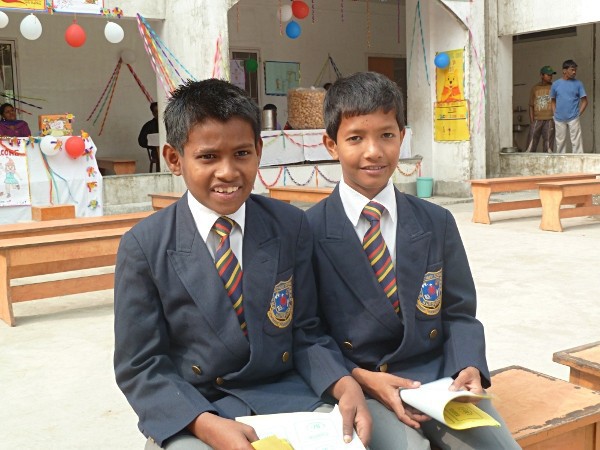 Debashis et Rafiq de retour à l'école après les vacances, janvier 2012