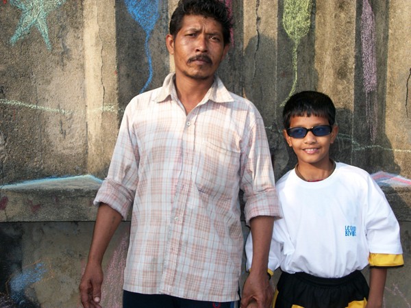 Debashis et son père, après la pièce de théâtre, Noël 2011