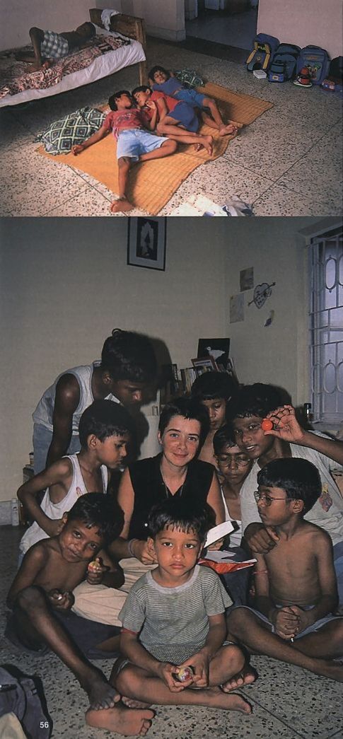 lors que nous sommes en train de discuter, Soumen vient s'asseoir près de nous. À 14 ans, il fait figure de Harry Potter indien. Doué, il a appris l'anglais en six mois. Intelligent, studieux, calme, on aime penser qu'il ira loin. Quand je lui demande ce que signifie le tatouage qu'il porte au poignet, il le cache brusquement. Fabienne m'explique: « C'est son nom, mais il ne veut pas qu'on le reconnaisse. À la mort de ses deux parents, Soumen a été recueilli chez un de ses oncles. Il m'a raconté que lorsqu'il avait faim, il volait des fruits dans les arbres, un cousin le nourrissait en cachette. Obligé de travailler, il était aussi battu. Il s'est enfui, a changé de nom pour que son oncle ne le retrouve pas et a échoué à la gare. Quand je l'ai récupéré, il n'y était que depuis deux jours. » Soumen se colle à Fabienne et pose sa tête sur son épaule. Le manque affectif de ces gosses est criant. Régulièrement, ils grimpent sur les genoux, font un câlin, petits chats en mal d'amour. Si l'affectif est une donnée de base dans la réinsertion de ses « galopins », l'éducation est la priorité de Fabienne.