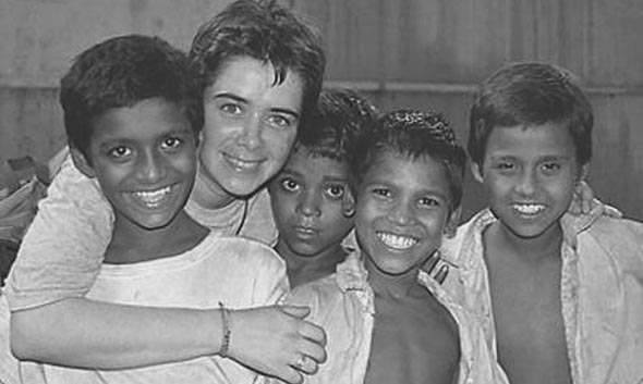 Fabienne et les gamins de la rue, à Calcutta (Inde). La jeune femme n'a de cesse de venir en aide à ces jeunes en détresse.