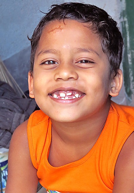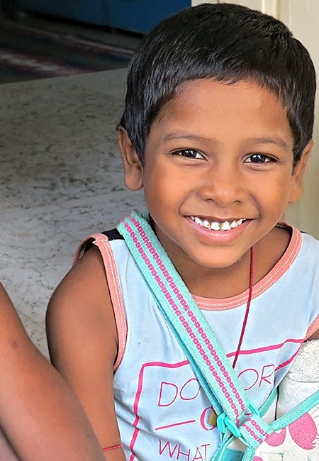 Sanu a 5 ans. C'est le frère de Gita et Mitali. Après un grave accident, sa mère est décédée et son père a eu le bras paralysé. Il reste avec de grosses séquelles. L'association a permis à Sanu d'être scolarisé en maternelle. Il peut ainsi se socialiser et avoir un bon repas par jour.