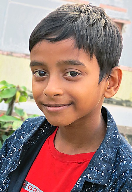 Santanu a 7 ans. C'est le cousin de Mitali, Gita et Sanu et le frère de Sanghita. Il n'était pas scolarisé et il a été admis en Classe I en 2023. Depuis, l'association lui apporte fournitures scolaires et cours de soutien.