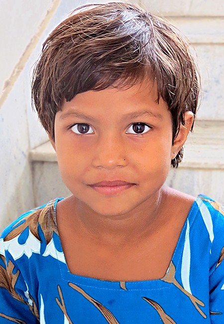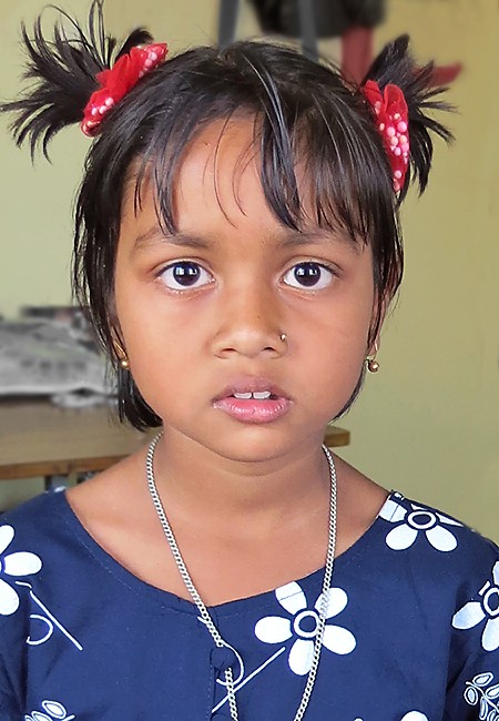 Afrina a 5 ans, c'est la soeur de Arifa. En 2024, elle a bénéficié de soutiens ponctuels pour son éducation et depuis 2025, elle est inscrite dans une nouvelle école. Son père n'est pas souvent présent mais sa mère se soucie de son éducation. Elle souhaite obtenir une place à "Rainbow", le foyer où est accueilli sa première fille. L'association soutient Afrina pour la totalité des frais scolaires.